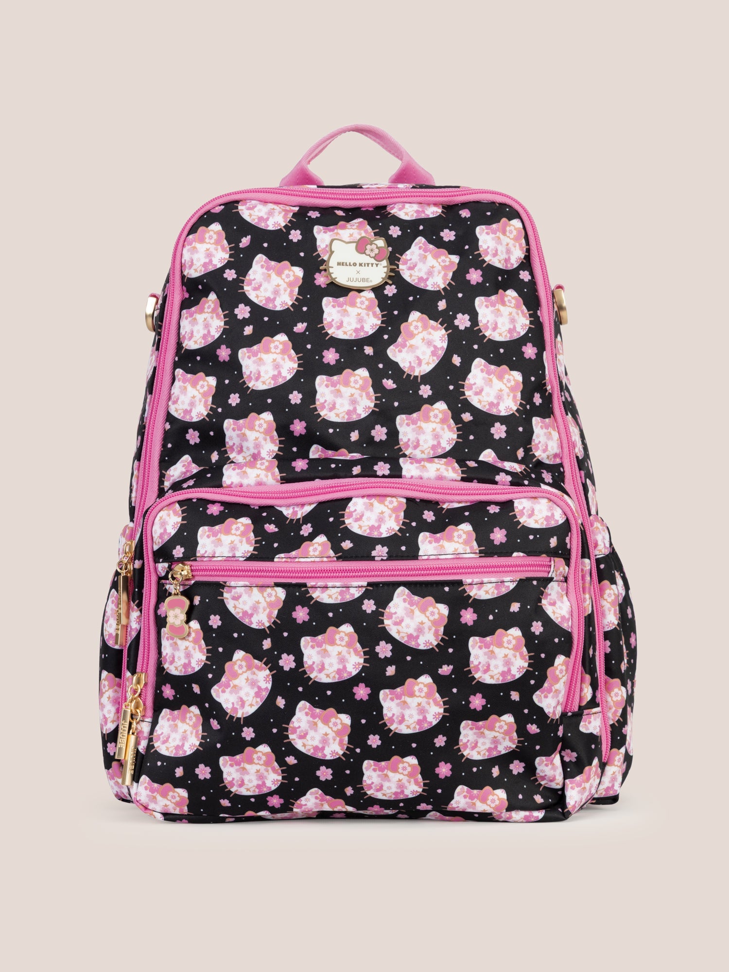 Hello Kitty® × JuJuBe Cherry Blossoms Zealous Backpack Diaper Bag — Black and Pink